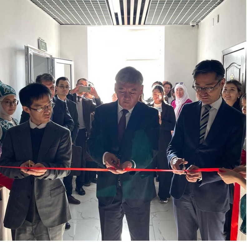 開設式は 2025 年 11 月 18 日に開催され、東京科学大学の那波伸敏 教授(研究代表者/Principal Investigator)、西形康太郎氏(JICAキルギス共和国事務所長)、OshSU の Kudaiberdi Kozhobekov 学長、International Medical Faculty の Roman Kalmatov 学部長をはじめ、JICA、東京科学大学、オシ国立大学の関係者、研究センタースタッフが出席しました。